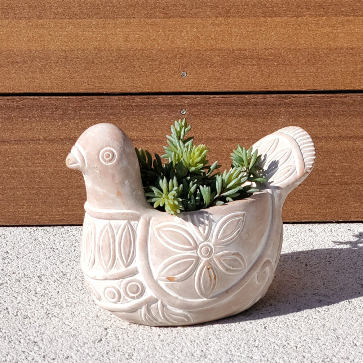 This playful pottery in the shape of birds will make your garden planters unique and functional. Each piece is molded into fun shapes filled with colorful flowers or green plant materials.